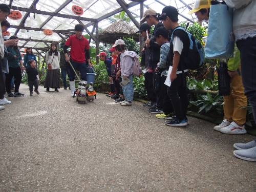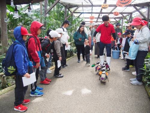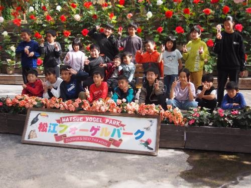 全校遠足でした 10/23 全校遠足で、松江フォーゲルパークへ出かけました。朝は冷え込みましたが、日中は気持ちの良い秋晴れに恵まれ、思い切り楽しむことができました。到着後、園内を巡るウォークラリーを楽しんだり、ペンギンのお散歩に癒され、フクロウショーを楽しみました。水辺のカモに餌をやって楽しんだ後、なかよし班で美味しくお弁当をいただきました。なかよし班での行動でしたが、6年生がしっかりとまとめてくれたおかげで、一日楽しく過ごすことができました。