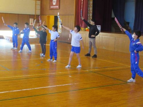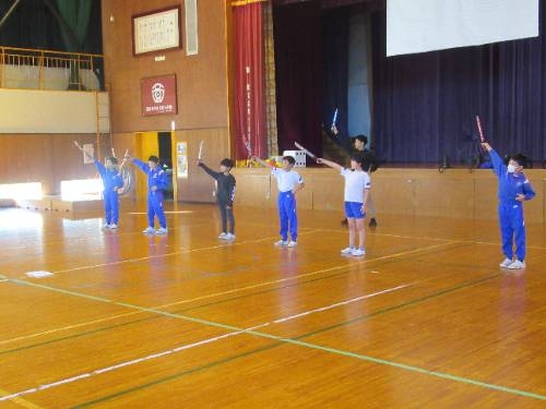 ダンス練習スタート 10/24 今日からにしっ子発表会に向けてのダンス練習がスタートしました。講師は、毎年お世話になっている三瓶先生です。3,4年生は、ヤマタノオロチ伝説の学習の成果を当日発表します。今日は、その中で披露するスサノオノミコトをイメージしたダンスに取り組みました。子どもたちは、準備した剣を持ち、勇ましく、そして優雅な舞の完成を目指しが頑張りました。