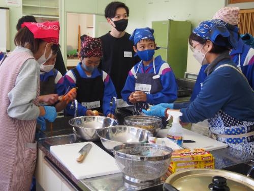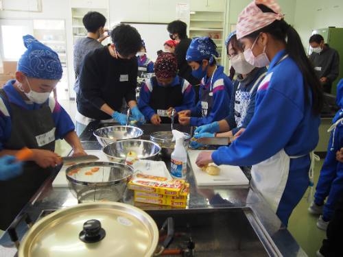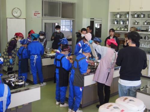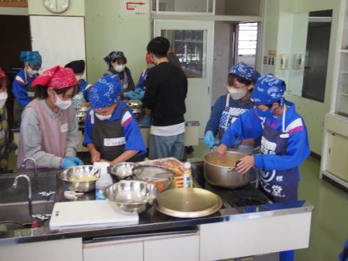 まずはじめに昼食づくりを役員の皆様と一緒に行いました。