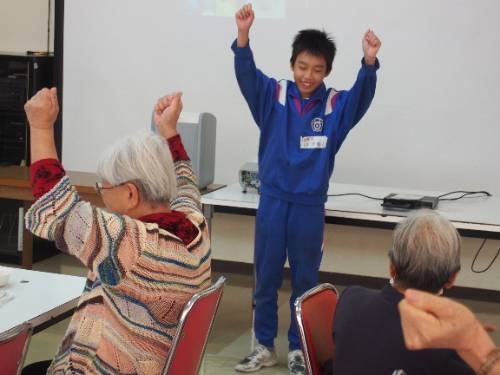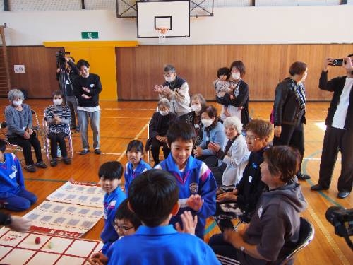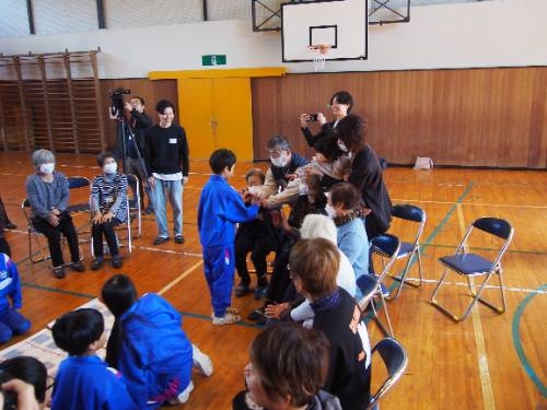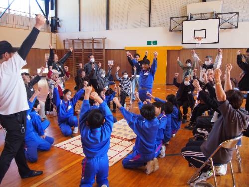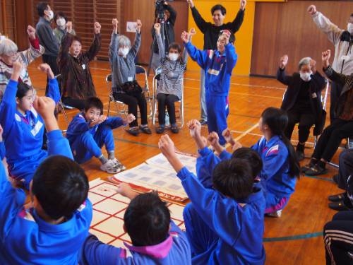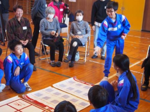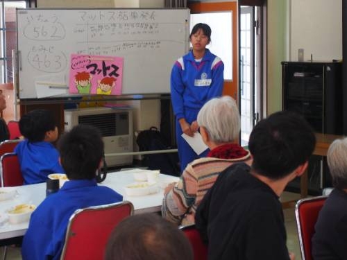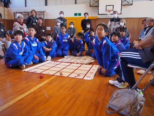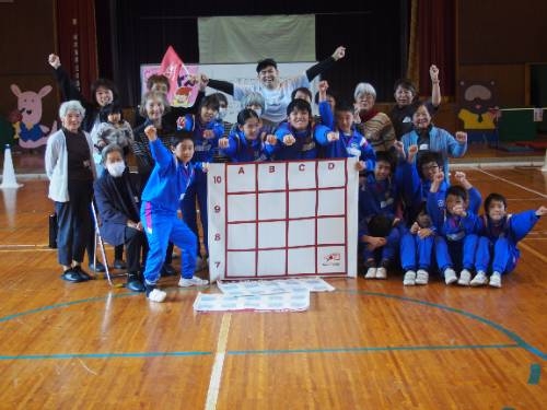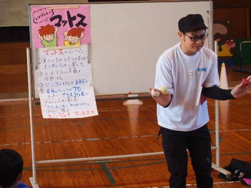 つづいて、CNCの宮本さんをはじめ5人のスタッフの方を講師に、「マットス」というゲームを体育館で行いました。子どもたちと高齢者の皆様が楽しくゲームを楽しむことができました。