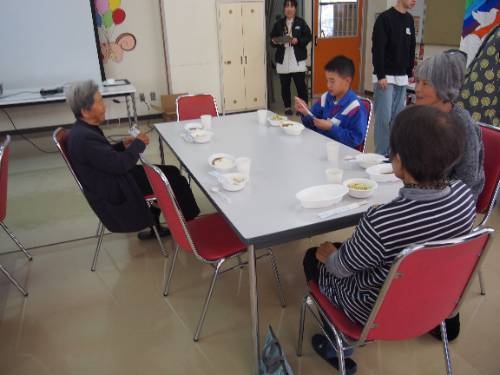 「今日は一日だれとも話さなかった」「一人黙ってお茶を飲んだり食事をしたりするのはつまらない」といった地域の高齢者の方々の居場所づくり・仲間づくりを目的にした「ごっとで茶ロン」を学校で開設しました。短い時間でしたが、子どもたちと高齢者の皆様が思いやりの心をもって接し、活動を通して交流を深めました。