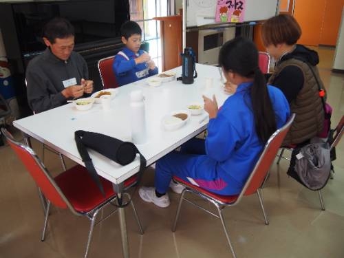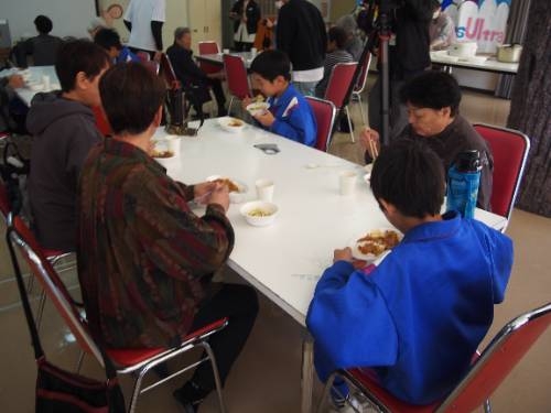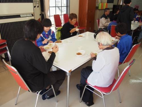 楽しく遊び、記念撮影の後は、昼食です。初めに仕込んだカレーライスを参加者全員で食べました。心もお腹もいっぱいになったひと時でした。