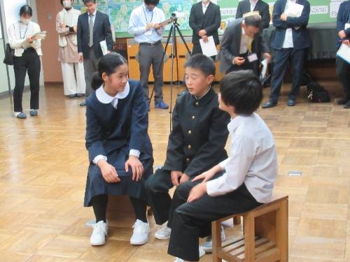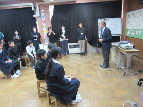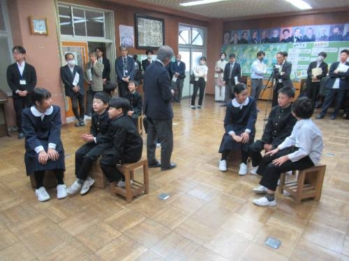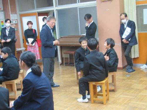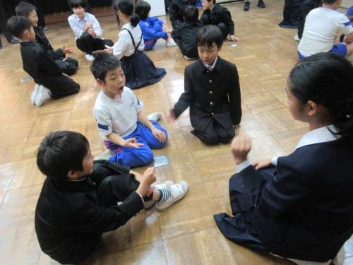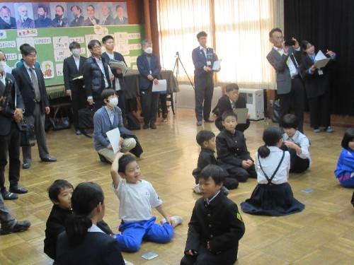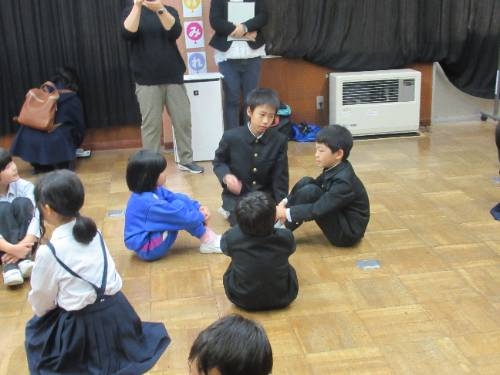 たくさんの先生方に「さくらタイム」の様子を見ていたたきました 11/13 かかわりの力を育む「スリンプルプログラム」を考案された曽山和彦先生を講師にお招きし、幸せな学校・学級づくりの研修会が開催されました。雲南市内の先生方が多数来校され、「全校さくらタイム」の様子を見ていただきました。子どもたちは、相手を思いやる話し方・聴き方を大切にしながら活動に取り組んでくれました。講師の曽山先生からも子どもたちの自然な挨拶や素敵なかかわり方をたくさん褒めていただきまた。