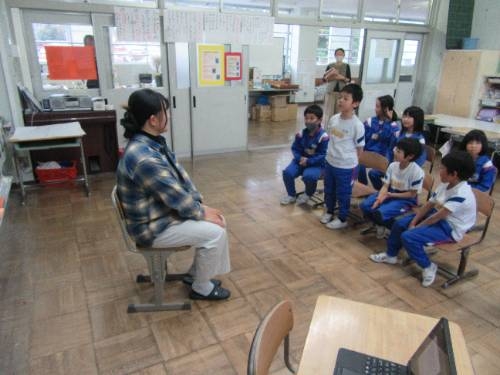 次に中国出身の方に中国語で読み聞かせをしてもらいました。そして、中国語でジャンケンをしたり、質問コーナーでは、中国の学校のことについて、たくさん教えてもらいました。