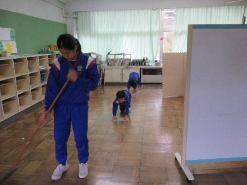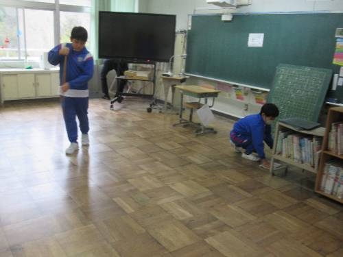 大掃除1日目 12/22 今週の木曜日に終業式が予定されています。2学期も残り4日となりました。お世話になった教室や学校の施設・設備のほこりを落とし、きれいスッキリとした気持ちで新年が迎えられるよう大掃除を行いました。今日は、1日目です。教室や階段の床を雑巾でしっかりと磨いたり、チョーク受けや敷居やサッシのレールにたまったほこりをしっかりと拭き取る様子があちらこちらで見られました。人数が少ない分、仕事量は、とても多くなりますが、一つ一つの作業を丁寧に、そして、真剣に行うことができました。