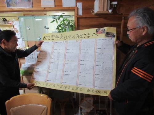 お礼を届けに行きました 先日、西日登交流センターで行った西日登神楽鑑賞会のお礼を代表の高尾様のところへお届けに行きました。感想の中には、江戸時代より続く、西日登神楽に感銘を受け、「自分もやってみたい!」という思いを持つ子どもたちもいました。西日登の名の付く、この伝統文化をいつまでも守り、継承していくためにできることをこれからも考え、大事にしていきたいと思います。