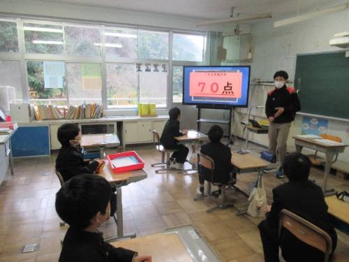 3,4年教室では、終業式の後、2学期の頑張りを振り返っていました。