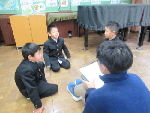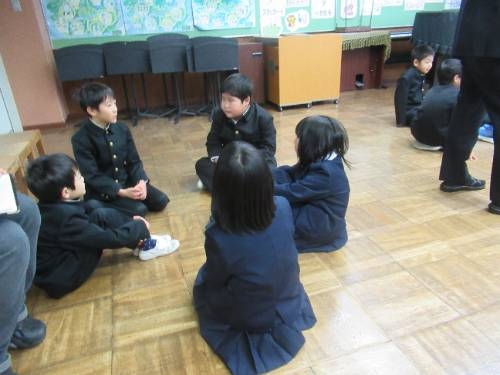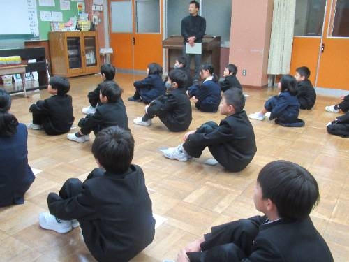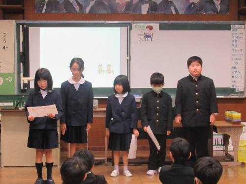 始業式の後には、冬休み中の宿題だった「体幹トレーニング」をみんなでやってみました。自分の身体を上手にコントロールして、体勢を保持することができました。そして、校外児童会で冬休みの生活をふりかえり、3学期のめあてを話し合いました。