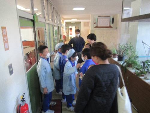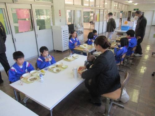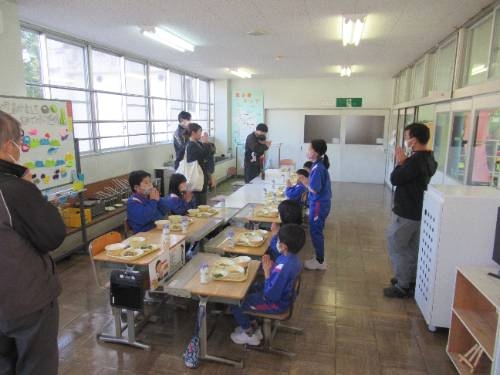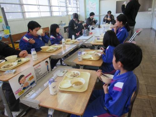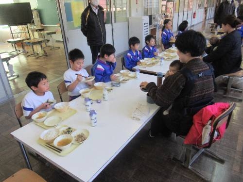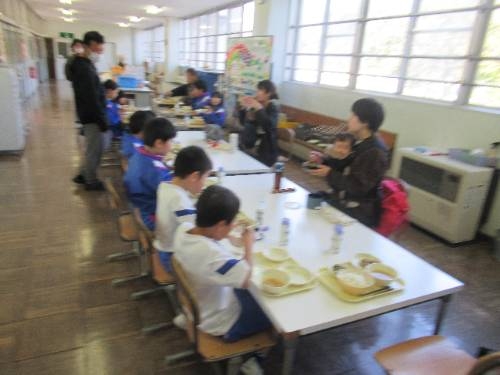 お久しぶりです! 1/16 お昼に、現在、育児休業中の先生が学校を訪ねてこられました。ちょうどお昼と重なり、給食の時間を一緒に過ごしてもらいました。ふれあい祭以来の来校でしたが、心も身体もひと回り成長した子どもたちの姿に、とても喜んでおられました。子どもたちも大喜びで、楽しく会食することができました。