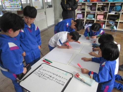 1,2年生は、6年生を送る会の係会に取り組んでいました。第2回目ということで、自分たちの役割が明確となり、テキパキと作業を進めることができました。