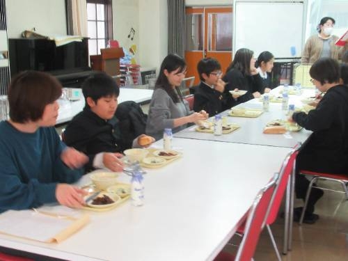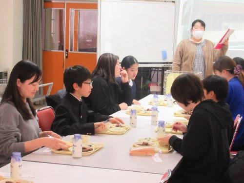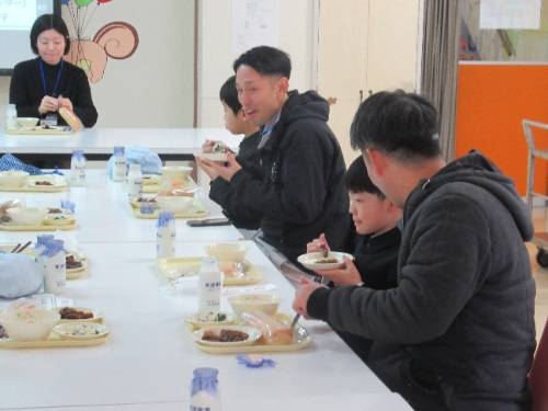 1/27 今日は、今年度最後となる授業公開日でした。授業公開を前に、3年生以上の保護者の方を対象に給食試食会を開催しました。子どもたちの普段の準備・片付けの様子を見ていただいた後に給食を一緒に食べました。今日は、クジラのケチャップあえが登場しました。また、今月唯一のパン食の日でした。お味はいかがでしたでしょうか?