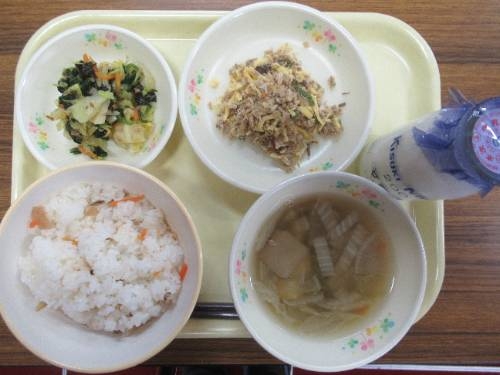 今日の給食(雲南☆まいもんの日) 今日は、「雲南☆まいもんの日」!雲南の郷土料理が登場しました。美味しくいただいたのは、「焼きさば寿司」。焼いたサバをほぐして、ちらし寿司に混ぜた料理です。おめでたい時や田植えの労いの場で食べられていたそうです。(給食だよりから) 今日のメニューは、 「サバ寿司」「牛乳」「磯香あえ」「まいたけのすまし汁」でした。