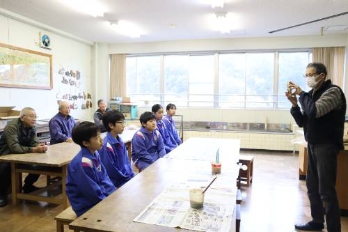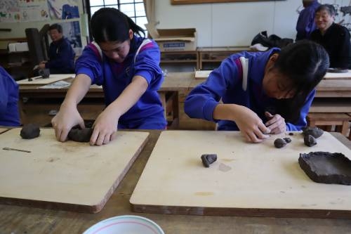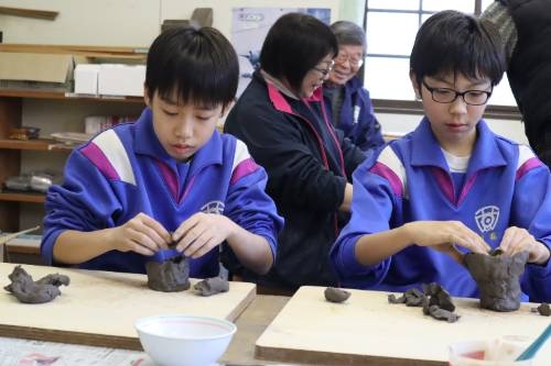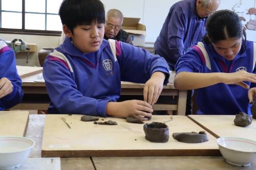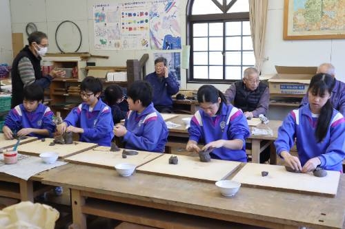 陶芸教室 毎年、西日登振興会のご厚意で陶芸教室を開催し、6年生の卒業をお祝いして頂いています。今年も三刀屋の永見さまにご指導いただき、子どもたちは、初めての陶芸にチャレンジしました。ソフトボールほどの大きさのある粘土をしっかりとこねて、成形していきました。「何を作ろうか?」と、悩む時間もありましたが、お皿や湯呑、カップなどに変身させ、釉薬を塗ることができました。これから2週間乾燥させた後、窯で焼くことになります。どんな作品に仕上がるのか、みんな楽しみにしています。