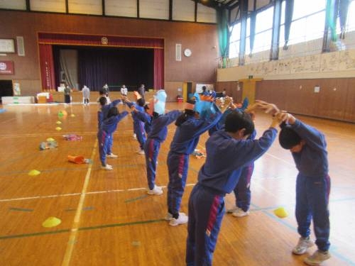 体育館では・・・ 2/6 5時間目 体育館をのぞいたら、3、4年生が中心となって、6年生を送る会の係会に取り組んでいました。送る会当日の具体的な流れを下級生に説明して、みんなで取り組む活動を一つ一つ確認していました。お世話になった6年生に心のこもった贈り物を準備してくれています。