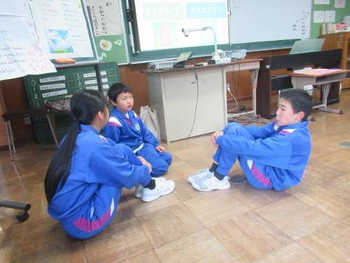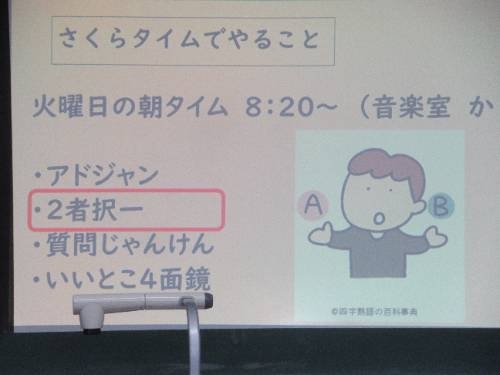 全校さくらタイム 2/17 全校さくらタイムでした。今日は、二者択一。今日のお題は、「ドラえもんの道具をもらえるなら? どこでもドアorタケコプター」子どもたちは、どちらかを選んで自分の考えを友だちに伝えた後、さくらトークで、もっと知りたいことや聞きたいことを話すことができました。しっかりとうなずきながら、友だちの思いを大切にする姿がとても印象的でした。
