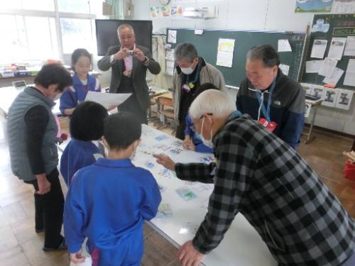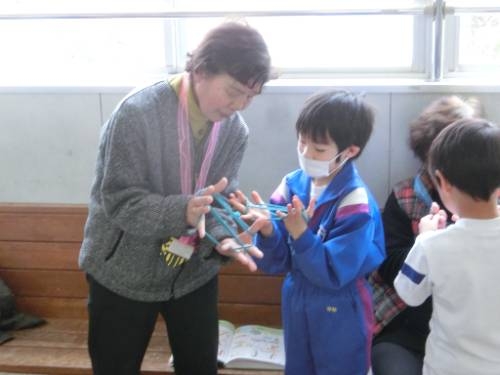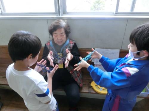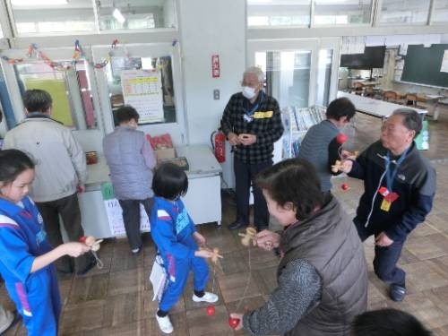 2/20 1,2年生の子どもたちは、地域のみなさんと交流しながら、昔あそびを楽しみました。