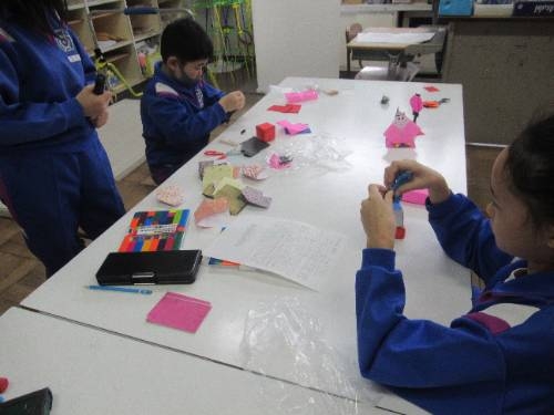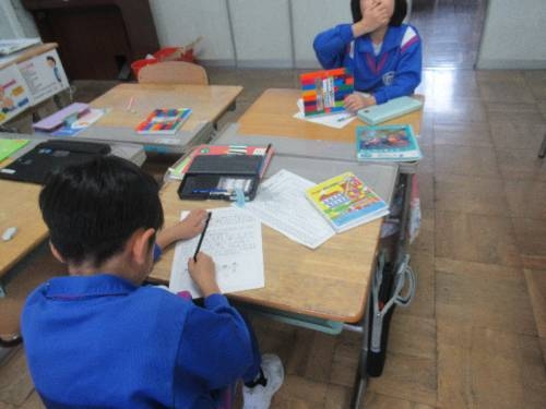 3月3日 1時間目の子どもたち 3/3 1時間目の子どもたちの様子です。1,2年生は、6年生を送る会のふりかえりとひな祭りにちなんだ飾りを作りました。3,4年生は、国語のテストでした。もう学年末のテスト内容でした。6年生は、今年一年、学校全体で取り組んだ「姿勢体操」をバージョンアップさせた新作の撮影でした。