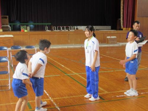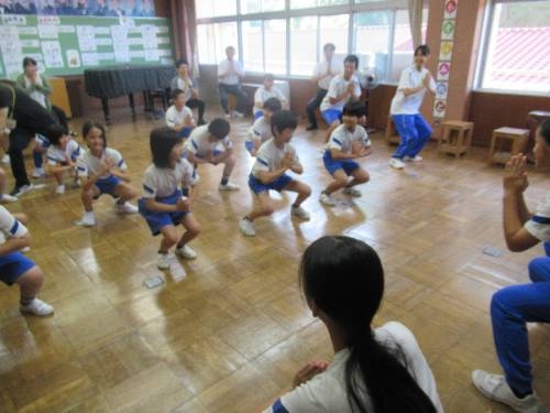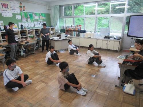 夢発見ウィーク2日目 夢発見ウィークは2日目となりました。名前もお互いに覚えて、子どもたちとの交流も一層盛んになってきました。中学生さんも昨日以上に積極的に活動に取り組んでくれました。3校時のワークショップでは、迫真の演技で子どもたちにお手本を見せてくれました。あと1日 よろしくお願いします。