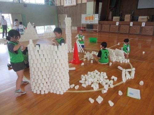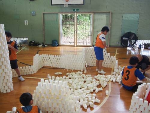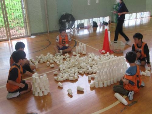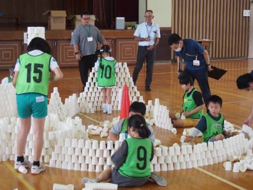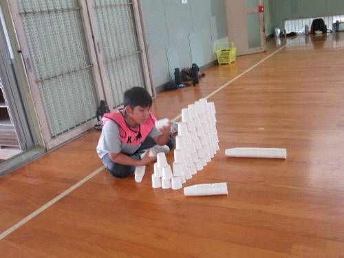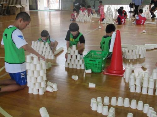 中部ブロック小学校交流会 9/30 加茂小学校で、中部ブロック小学校交流会(加茂小、木次小、斐伊小、寺領小、西日登小の5校が参加します。)が開かれました。西日登小からもひまわり・あおぞら学級の子どもたちが参加しました。 今年度、西日登小は、はじめの会の司会を任されました。たくさんの友だちの前でしたが、はっきりとした分かりやすい声で上手に会を進めてくれました。 交流遊びでは、紙コップを使った造形遊びで楽しみました。紙コップを自由に積み重ね、思い思いに形を作り上げていきました。個人で楽しんだ後、グループのみんなと協力して大きなオブジェを完成させました。