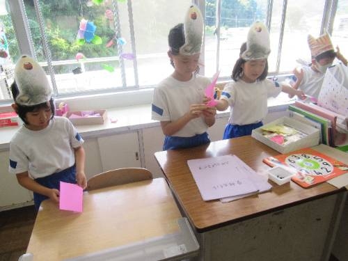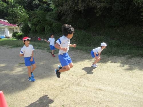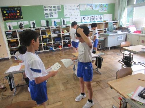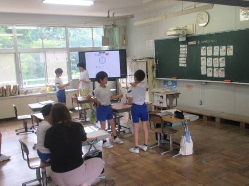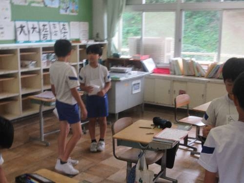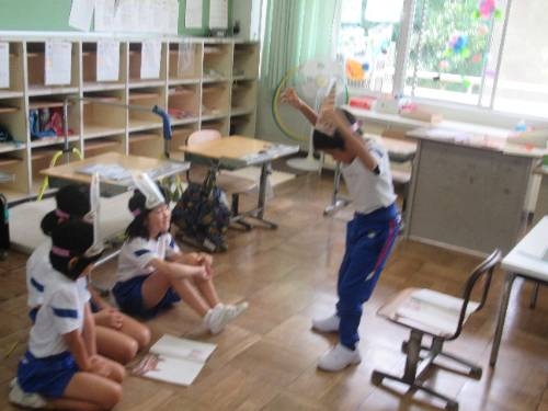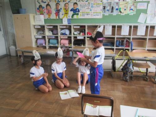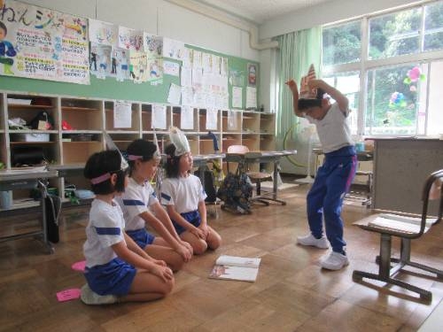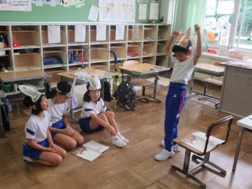 9月24日の子どもたち 今日は、スポーツタイムの日。暑さもおさまり、久しぶりに校庭でランニングをしました。短い時間でしたが、苦しくても自分の力を伸ばすために最後まで走りきることができました。今から、ロードレース大会が楽しみです。 3,4年教室では、外国語活動に取り組んでいました。「What time do you like?」と友だちにお気に入りの時間を尋ね合い、なぜその時間なのか、何が楽しみなのかをお互い知ることができました。 2年生は、国語の時間でした。「ニャーゴ」を題材に、場面の様子に着目しながら登場人物の思いをイメージしながら表現活動に取り組んでいました。ねずみとねこが遭遇する場面を登場人物になりきって演じていました。