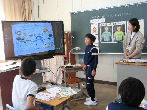 朝食を食べると、頭・体・お腹にいいスイッチが入ること、サーモグラフィ画像で朝食後の体温が上昇することなどを学びました。
