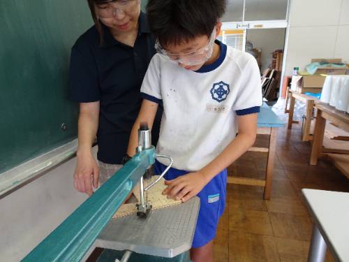 5・6年図工 2025年10月07日 05:58 デザインしたものを糸のこを使って仕上げています。 事前にコツや気を付けるポイントを学び、集中して活動しました。 曲線を生かした作品の完成が楽しみですね!