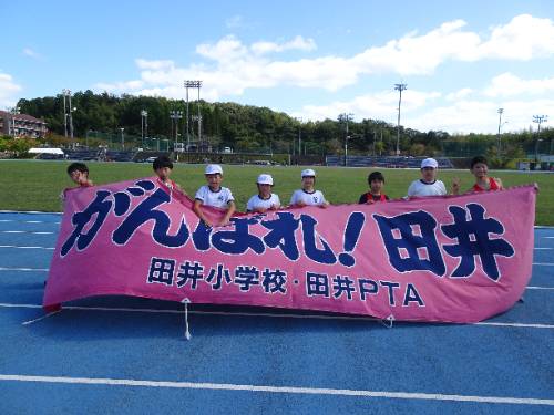 田井小学校からは4~6年生の選手が参加、3年生以上が応援に出かけました。