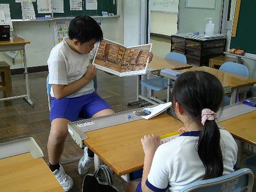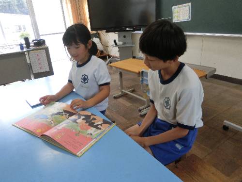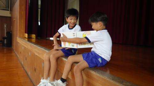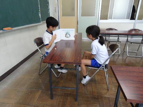 低学年と高学年がペアになり、お互いに心を込めて読み、聴きました。