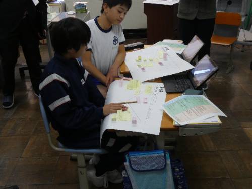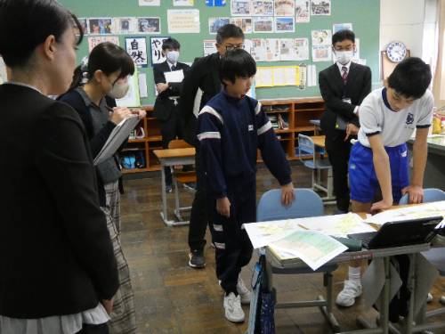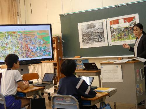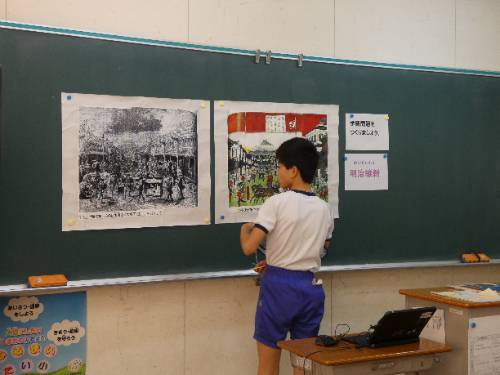この日は、高学年の社会科の授業を行い、島根県教育センターの指導主事の先生に見ていただきました。
