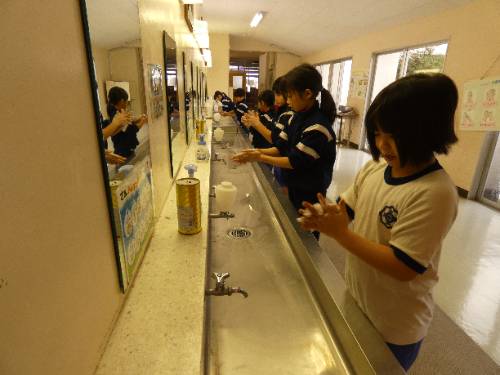 身体計測に合わせて(その2) 2026年01月16日 06:21 この日の身体計測では、手洗いの大切さについての保健指導も行いました。 しっかり洗ったつもりでもバイキンが残る場合があることを知り、より効果的な手洗いの仕方を体験的に学びました。