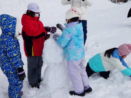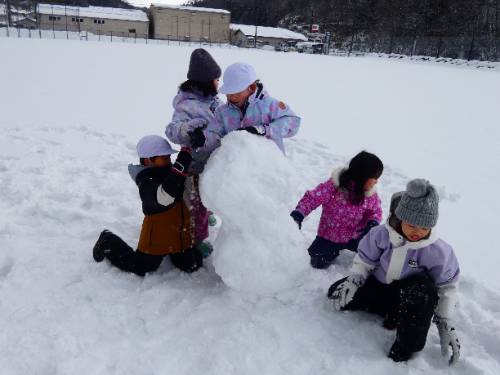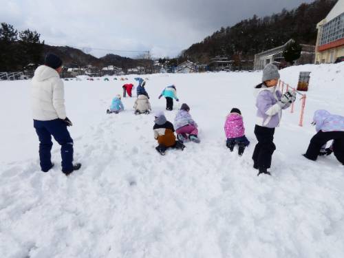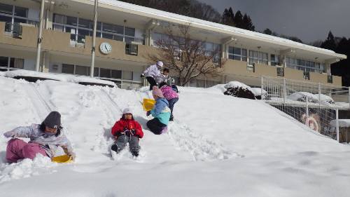 特に、雪遊びでは田井小の倍くらいある雪をたっぷり使って雪だるまを作ったり、そり遊びをして楽しそうな様子でした。