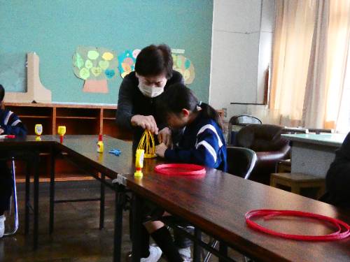 地域の工作名人の方に来ていただき、1・2年生が豆入れづくりを学びました。