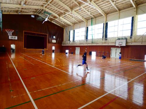 先月のことですが、1・2年生がつくった凧を体育館であげました。