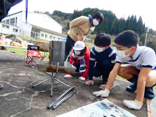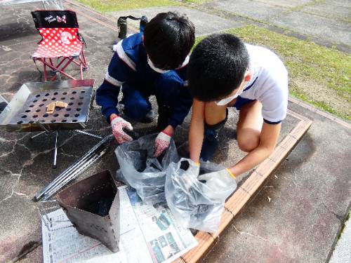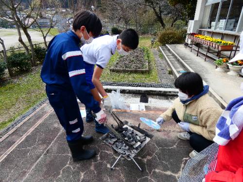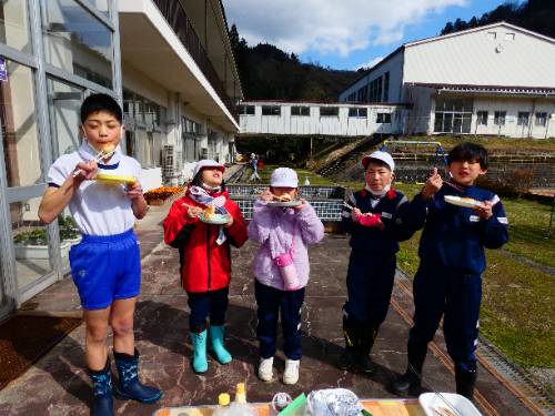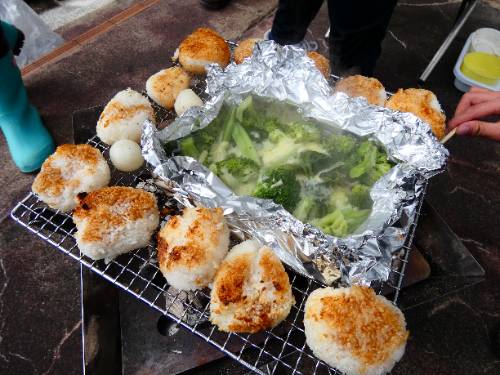 昨年度作ったお米で作った焼きおにぎり、ひまわり・たんぽぽ学級が育てたブロッコリーのチーズホイル焼きなど。