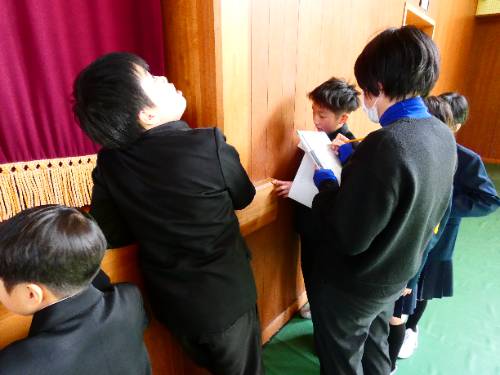 全校で安全点検 2026年03月15日 06:08 安全点検は、いつもは定期的に教職員が行っています。 田井小学校では、年1回は子どもと教職員が合同で安全点検を行うこととしています。 子どもたちの目線で危なそうなところはないか、学校は安全かを確かめています。