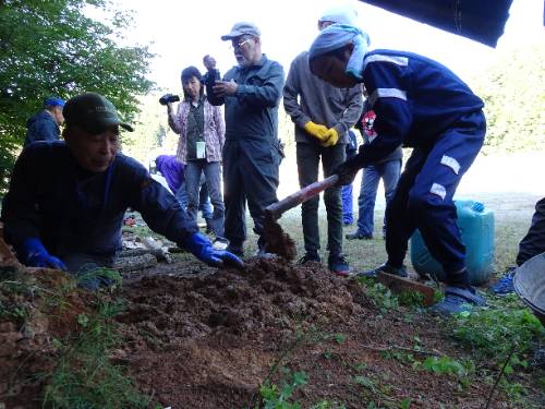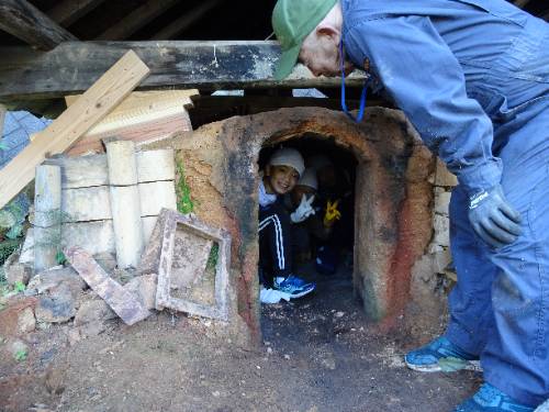 よい炭になるナラの木を窯の中に詰め入れたり、粘土と水を練ったりする体験を行いました。