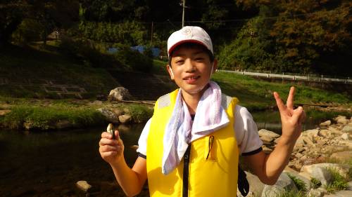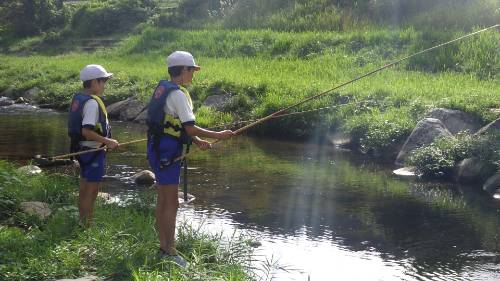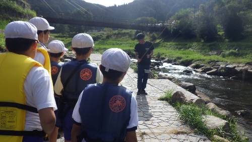 この日のクラブ活動では、深野川での釣り体験を行いました。
