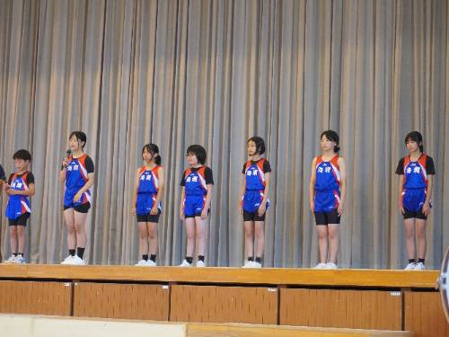 本日(9日)に開催された「雲南市小学校陸上競技大会」の壮行式を昨日行いましたが、その様子です。