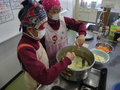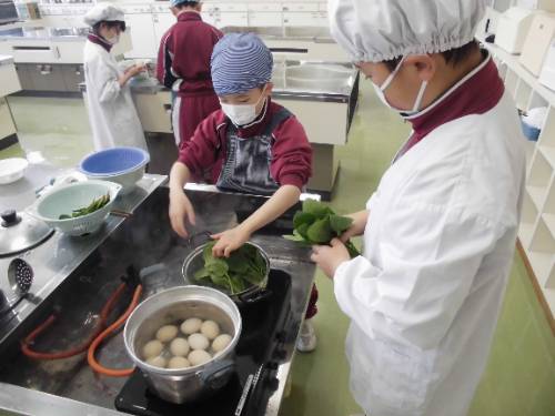 「ありがとうの会」までの3・4時間目に、それぞれが分担して準備した食材を使って「カレーライス」と「ほうれん草のおひたし」「ゆで卵」づくりから始まります。炊くご飯は、もちろんみんなで育てたお米です!