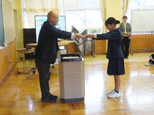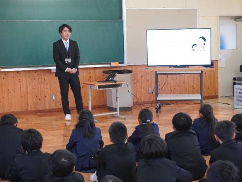 ↓生徒指導担当から、冬休みのくらしで気をつけることや、お年玉をもらってのお金の使い方などについて話しました。