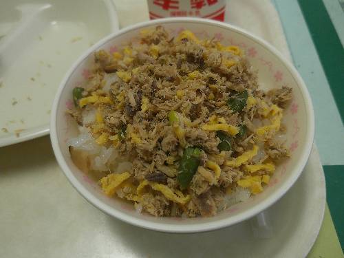 青色野菜のほうれん草、キャベツ、小松菜にコーン、芽ひじき、ツナフレークが和えてあった「青菜とひじきのサラダ」。マヨネーズの甘酸っぱさが、すべての具材を引き立てていました(^_-)-☆