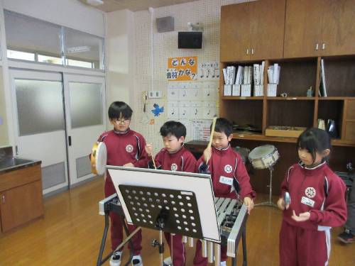 その後、実際に楽器を使いながら【めあて】の達成に向けて試行錯誤しながらいろんな楽器を使って音を作っていました。