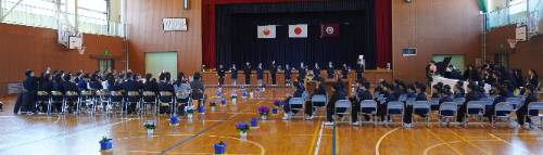 式の準備・当日の式に臨む態度・そして見送りまで、卒業生はもちろん在校生も全員が心を込めての 緊張感の中にも温かさの満載の卒業式となりました。