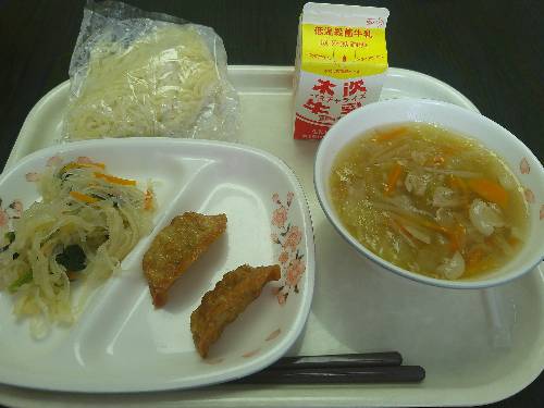 豚肉、キャベツ、もやし、かまぼこ、ニンジンなど具だくさんの「チャンポン麺」。中華スープとゴマ油の香りでツルツルとおいしくいただきました(*^^)v
