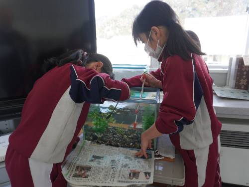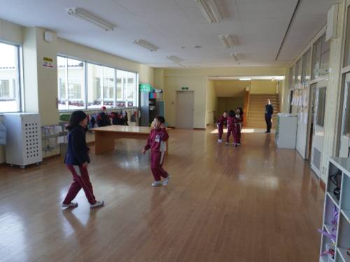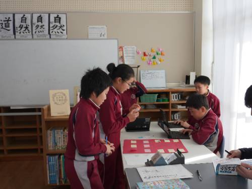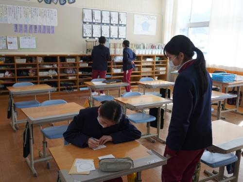 2年生が楽しそうに絵の具で色塗りをしていました。