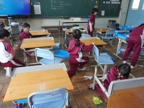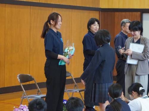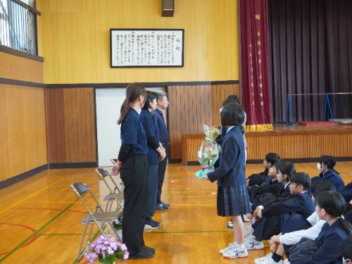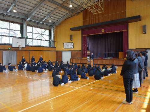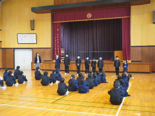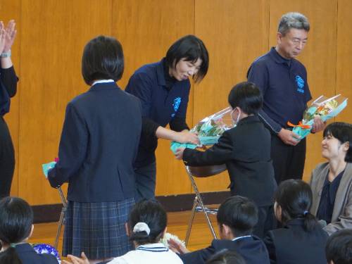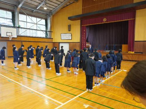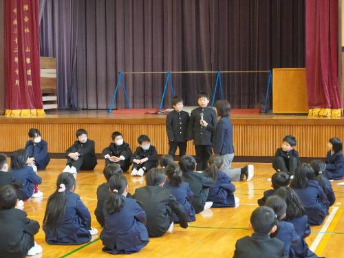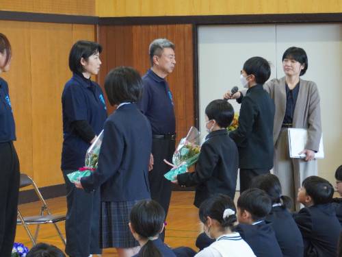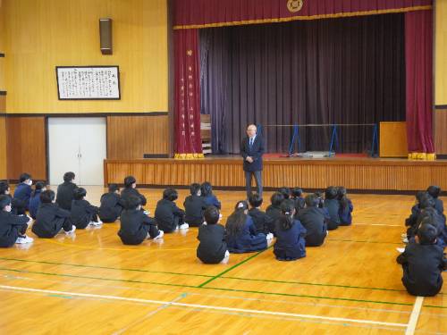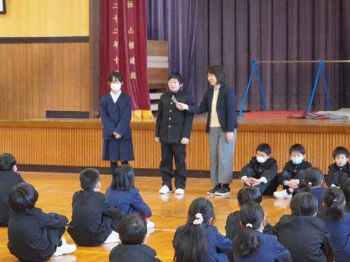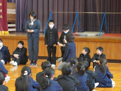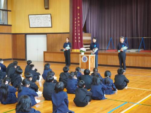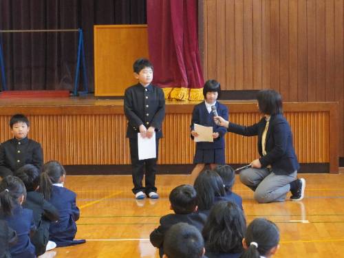上級生になる皆さん元気のよい「あいさつ」や「へんじ」を心がけ、明るく元気いっぱいの海潮小学校にしてほしい、と話しました。