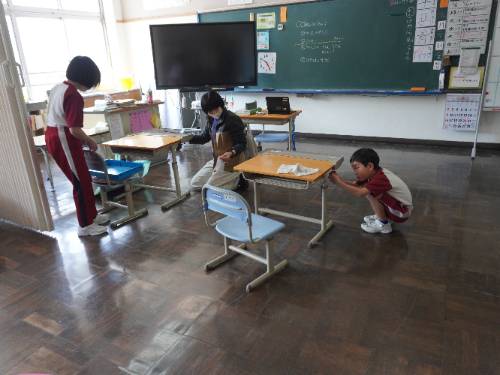 子どもたちの真剣な表情を見ていると、「命を守り」「笑顔で」「元気いっぱいの声」が響く海潮小学校になると思いました。