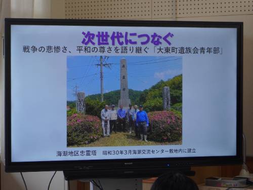 その第一弾として、先日「大東戦没者遺族会」の方々3名に来校していただきお話を聞きました。