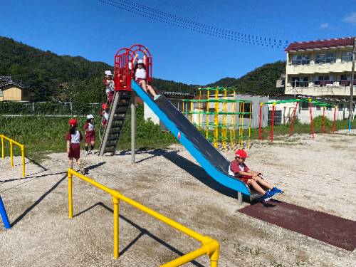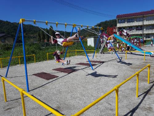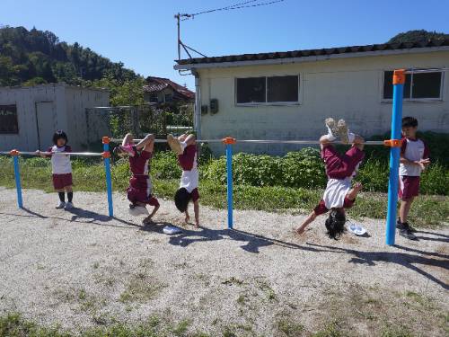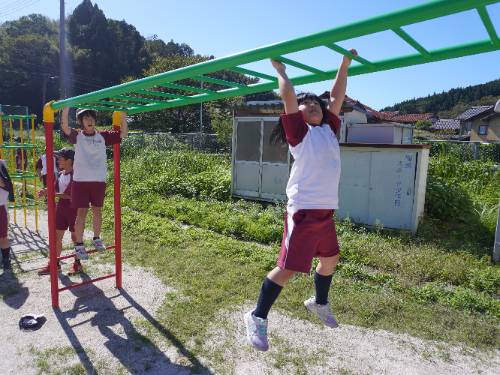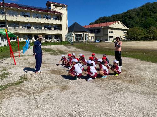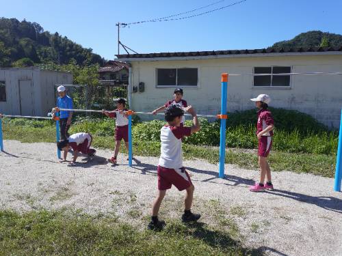10日の朝、昇降口の前でハイタッチをしながらいつものように子どもたちを迎えていました。