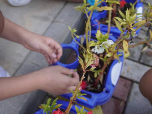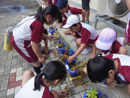 3・4年生は理科の時間に、一人一鉢で「ホウセンカ」の栽培を行いました。【植物は、種からどのように育つのだろうか】という学習をするためです。